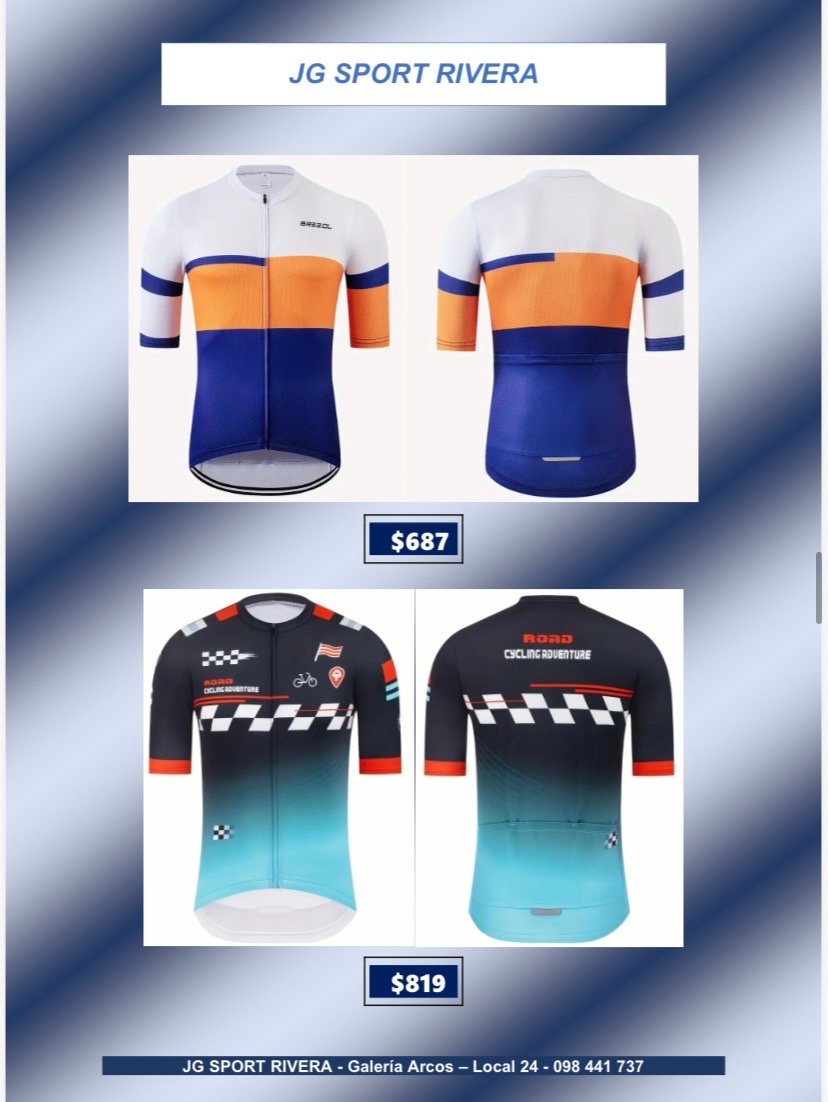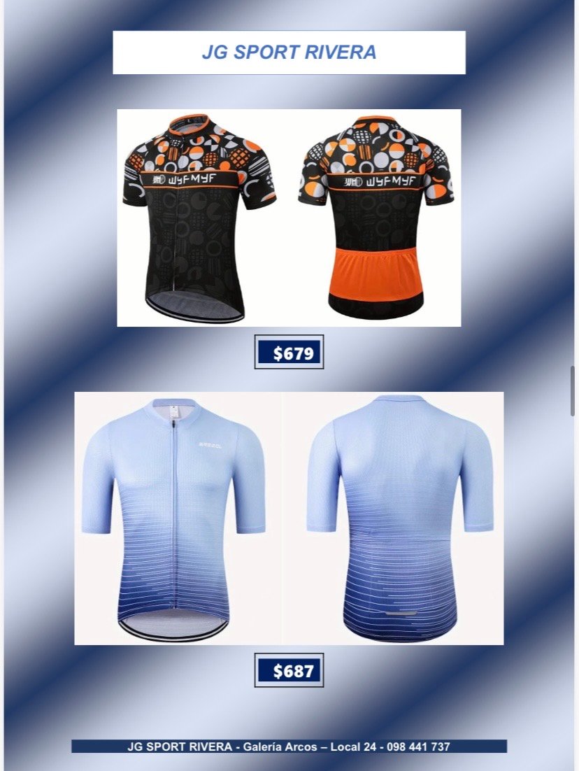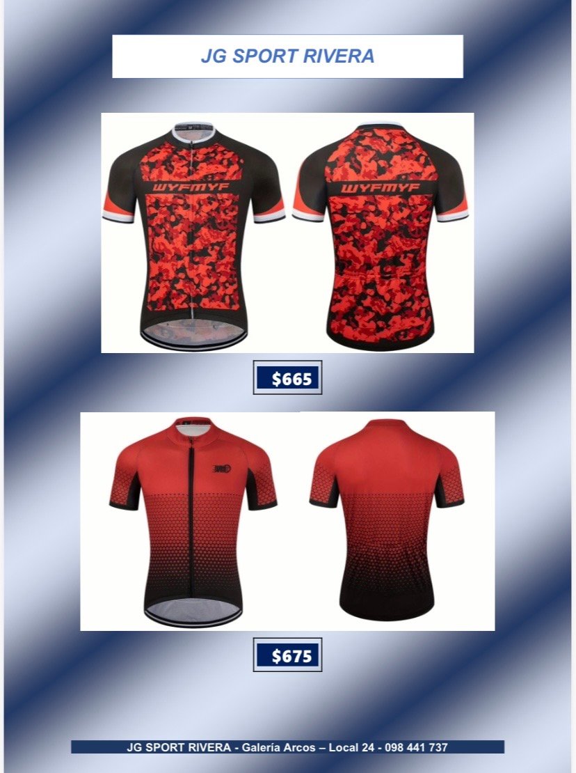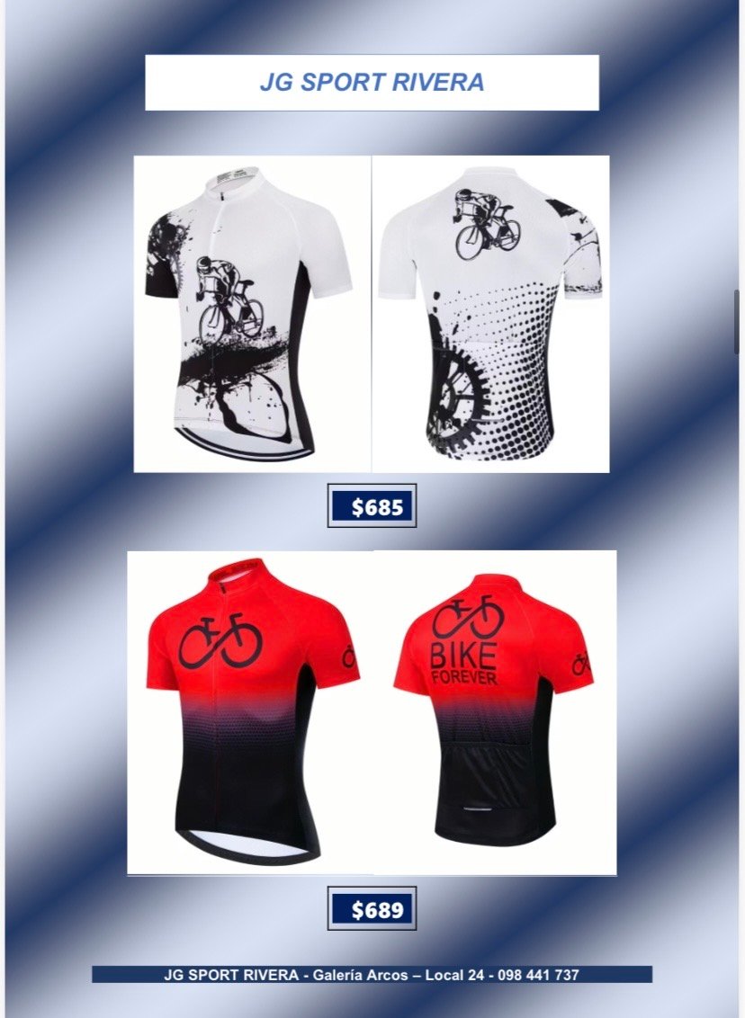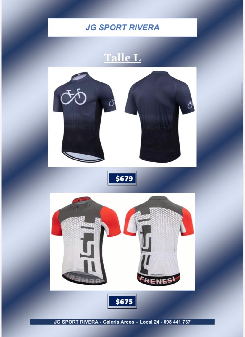 Camisetas de ciclismo talle L CategorÃasGimnasio Basketball Natación General Boxeo voleyball Ciclismo Camisetas de Ciclismo Fútbol Running Camisetas de ciclismo talle L$699 •Tela anti-sudor y de secado rápido •Alta calidad, còmodas y con 3bolsillos traseros Desde $600 q $800 Camisetas de ciclismo talle L cantidad Comprar ahora CategorÃas: Camisetas de Ciclismo, Ciclismo Productos relacionados Lentes de Sol, Deportivos $280 Añadir al carrito Bolso para herramientas $319 Añadir al carrito Soporte Caramañola $65 Añadir al carrito Casco de ciclismo $790 Añadir al carrito