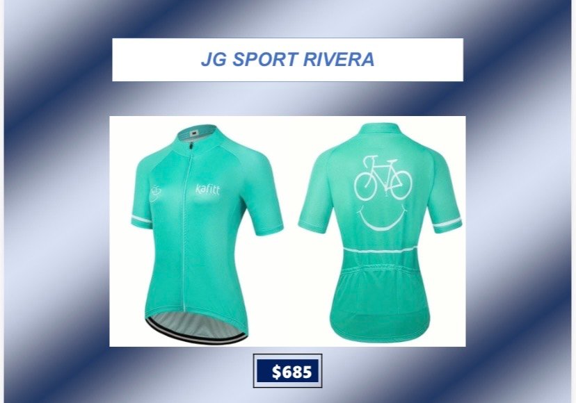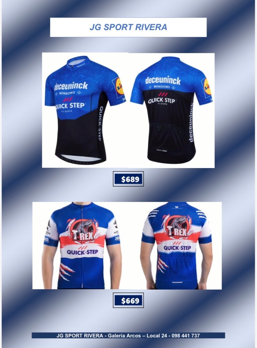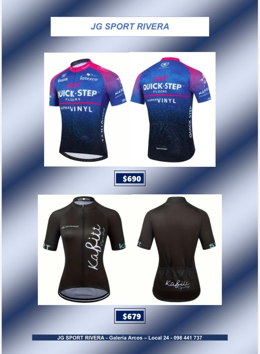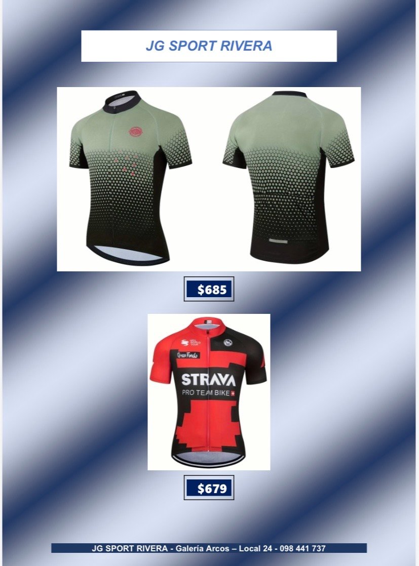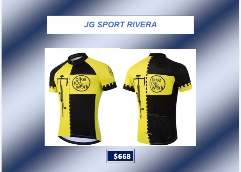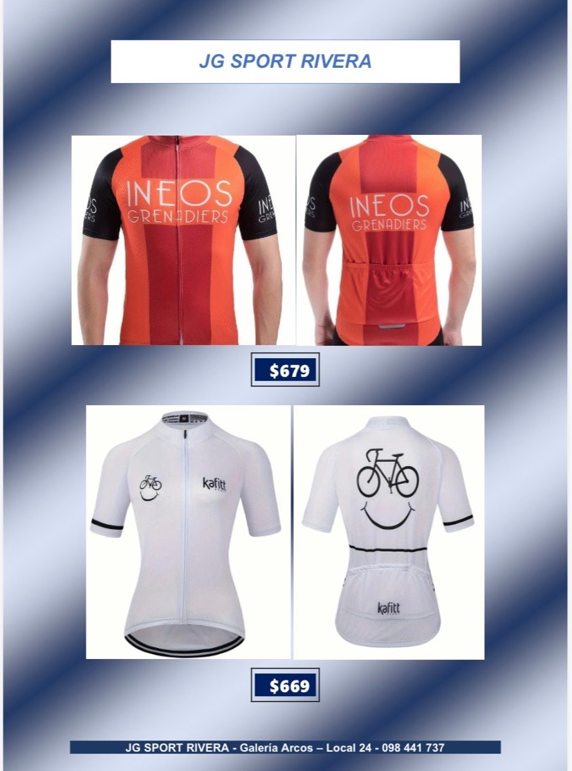 Camisetas de ciclismo talle L CategorÃasGimnasio Basketball Natación General Boxeo voleyball Ciclismo Camisetas de Ciclismo Fútbol Running Camisetas de ciclismo talle L$699 •Tela anti-sudor y de secado rápido •Alta calidad, còmodas y con 3bolsillos traseros Desde $600 q $800 Camisetas de ciclismo talle L cantidad Comprar ahora CategorÃas: Camisetas de Ciclismo, Ciclismo Productos relacionados Lentes de Sol, Deportivos $280 Añadir al carrito Bolso para herramientas $319 Añadir al carrito Soporte Caramañola $65 Añadir al carrito Casco de ciclismo $790 Añadir al carrito